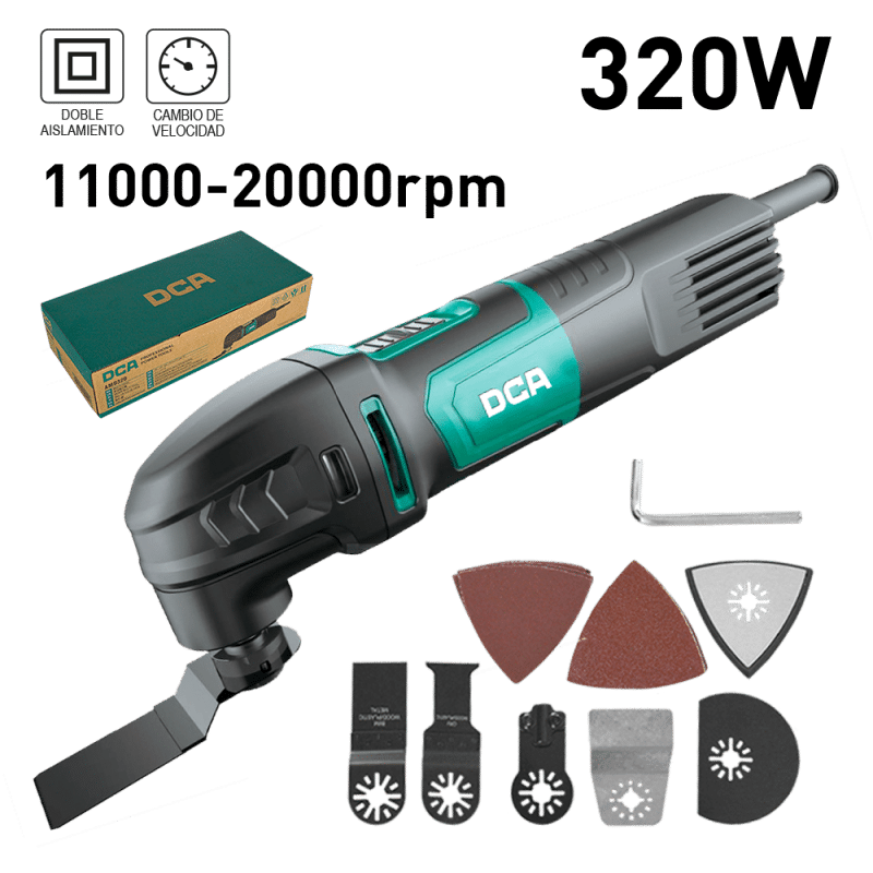 | Accesorio | Adaptador para portaherramientas – hoja de sierra de corte – hoja de sierra de segmento – raspador – placa de lijado – papel abrasivo (12pzs) – llave hexagonal – soportes de archivo |