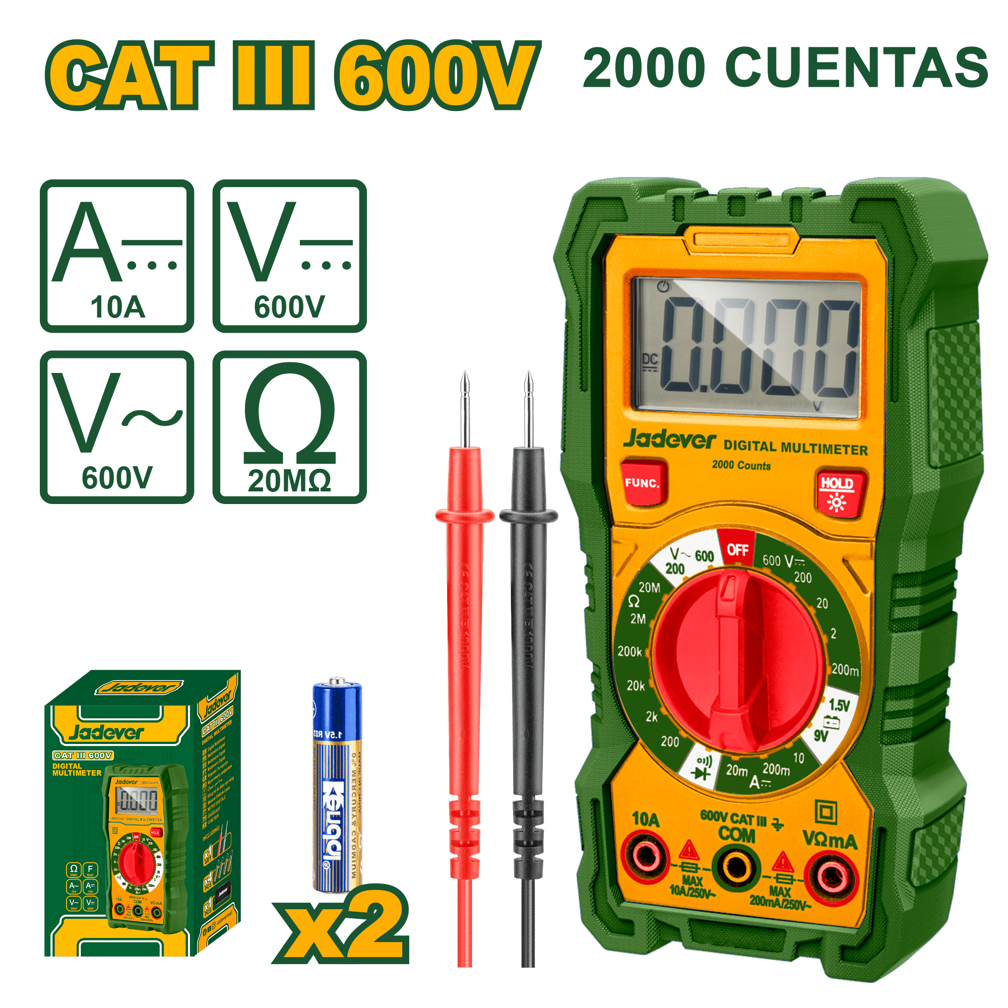 | Voltaje DC | 200 mV / 2 V / 20 V / 200 V / 600 V |